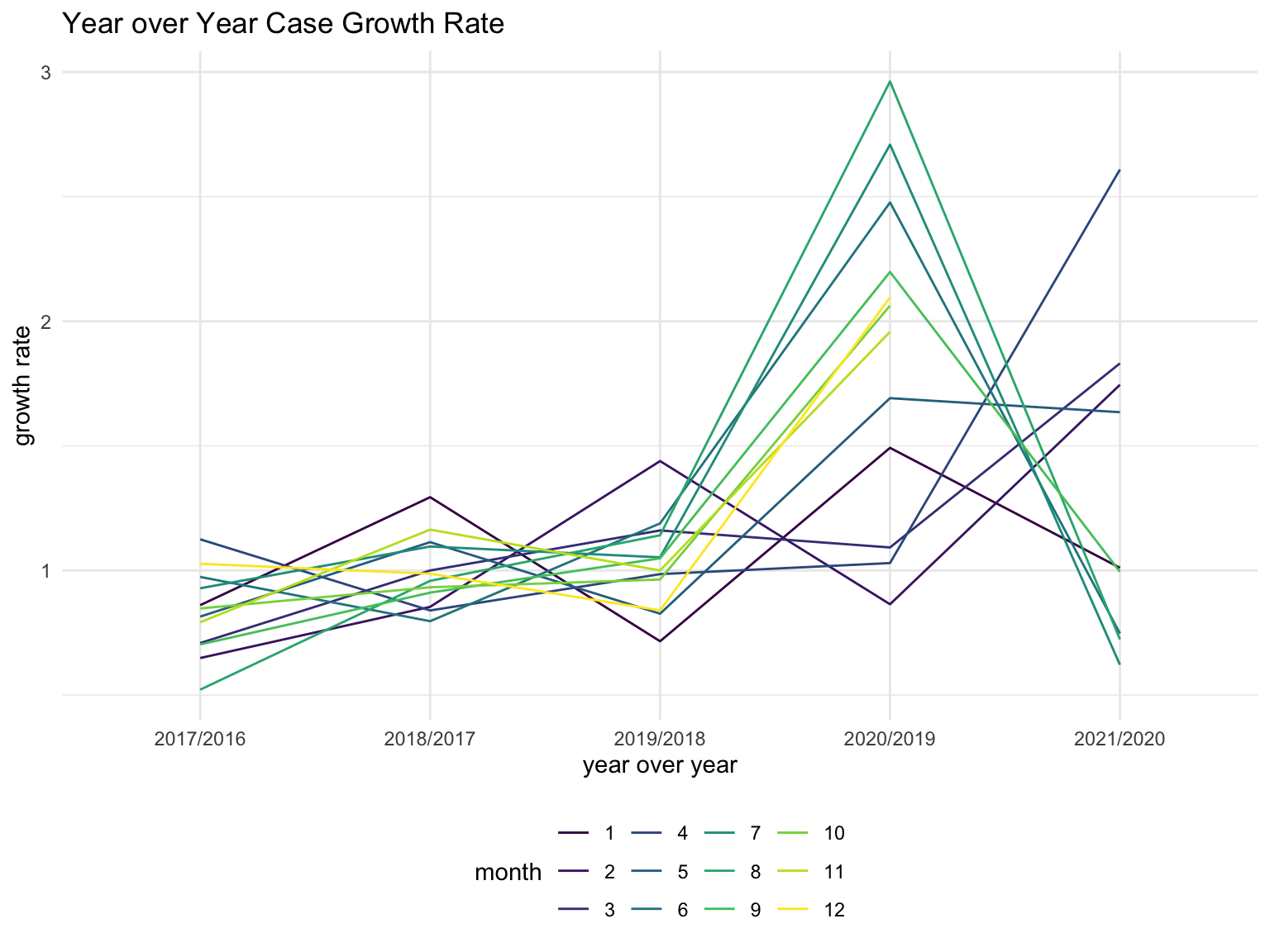 ggplot(aes(x = y_o_y, y = ratio, color = month, group = month)) +