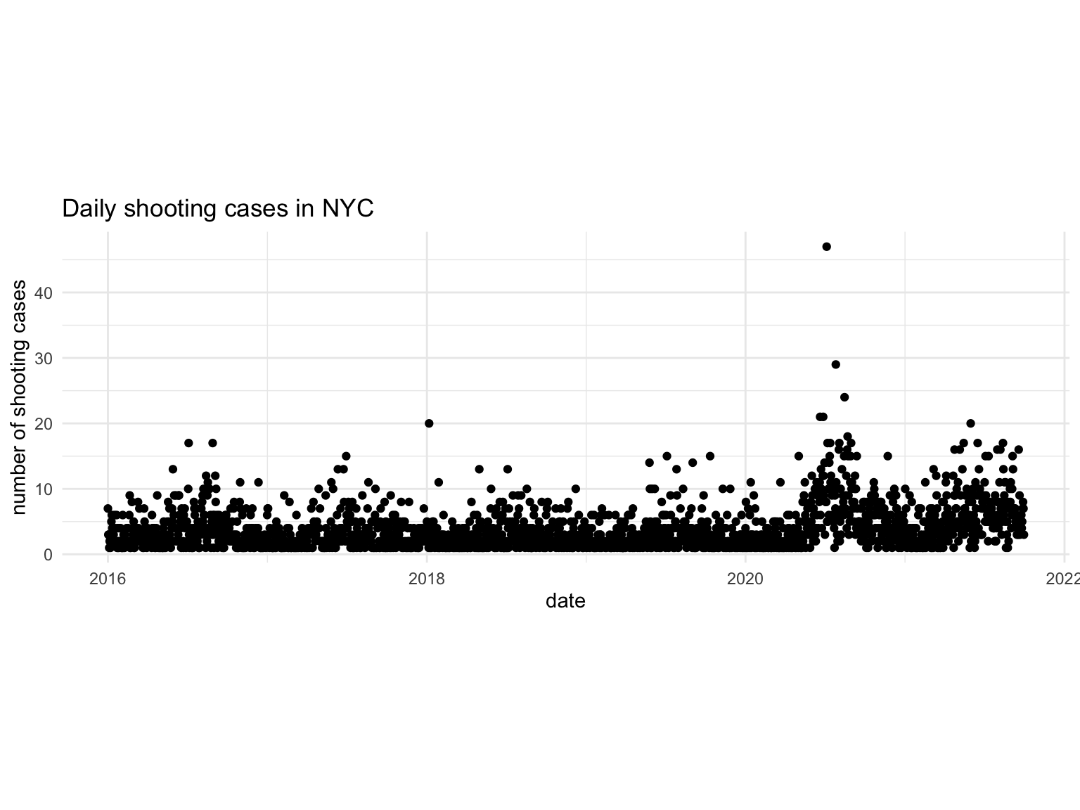 title = "Daily shooting cases in NYC",