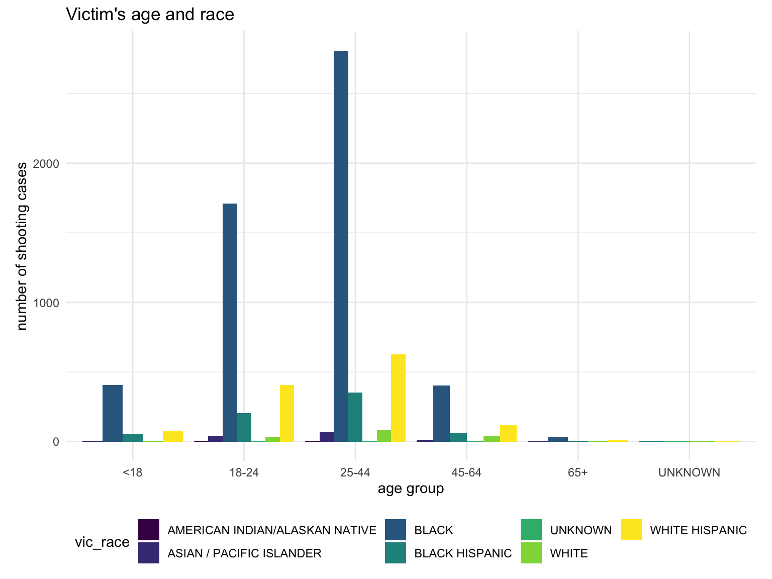ggplot(aes(fill = vic_race, x = vic_age_group, y = n_freq)) +