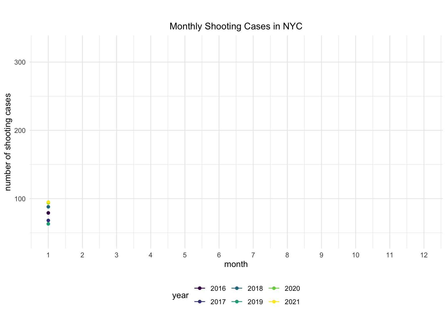 title = "Monthly Shooting Cases in NYC",